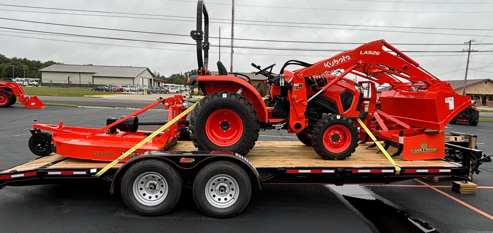 Includes 39hp Tractor, LA526FL Loader, 5ft Land Pride Bush Hog, 5ft Boxblade